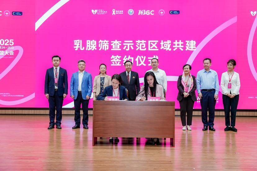 深圳市粉红丝带乳腺关爱中心理事长吴虹萱还与南山医院共同签署“乳腺筛查示范区域共建”协议。根据协议,双方将联合推动筛查标准化、流程规范化及数据共享体系建设,打造可复制、可推广的乳腺筛查“南山样板”。